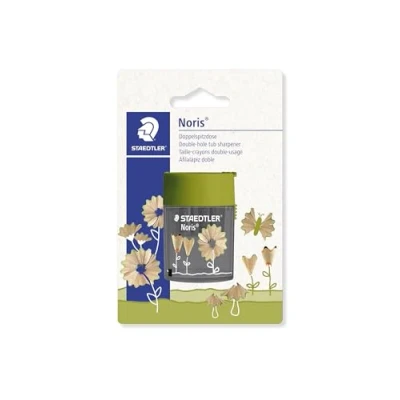 STAEDTLER Pencil Sharpener Double Hole Tub for Graphite & Colouring Pencils Noris Flower Design Pack of 1, 512 004BK