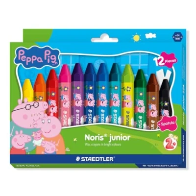 STAEDTLER Peppa Pig x Noris Junior Jumbo Wax Crayons for Large Area Colouring 12 Assorted Colours Kids Aged 2+ Years Pack of 12, 224 C12 L1