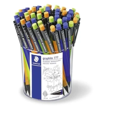Staedtler Refill, 777 07KP50 Mechanical Pencil Graphite Filled with B Refill Diameter 0.7 mm Pack of 3 Assorted Barrel Colours (Blue/Orange/Green), 50 Pieces in Case