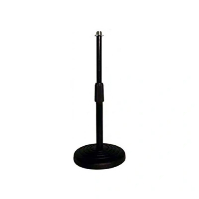Desktop microphone stand 2 telescopic sections Height range: 22cm-33cm Solid round base 5/8-inch mounting thread