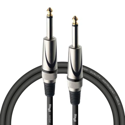 Stagg Deluxe Instrument Cable, 1/4" 6.35mm Jack To Jack, Heavy Duty Connectors, 1,5 Metres / 5 Feet, Black