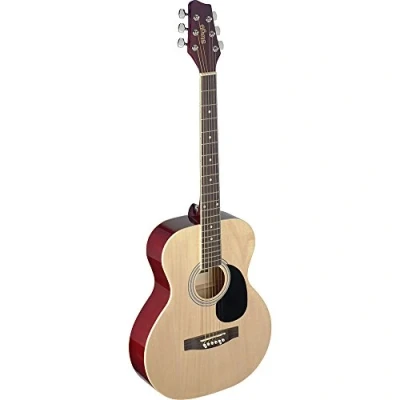 Dreadnought Style Acoustic guitar Top, back and sides: Basswood Neck: Nato Fingerboard and bridge: Black stained maple Finish: High gloss natural wood finish with white purling