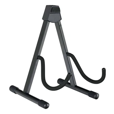 Designed for use with acoustic guitars Two cradling hooks and back rest with soft rubber covering to hold instrument securely and prevent it from scratching Spring loaded lock-pin mechanism to keep stand safely open Folds flat for convenient transportation & economic storage Black colour