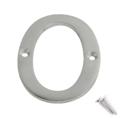 Stain Chrome Door Numbers Screw On 3 Inch Number 0 Elegant and Bold Numerals Suitable for All Types Including Wooden uPVC Composite.