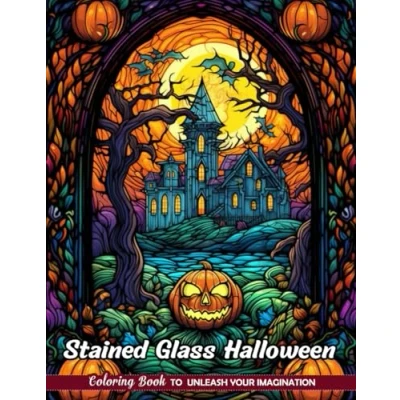 Stained Glass Halloween Coloring Book: Eerie Scenes in Luminous Designs