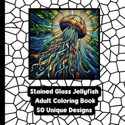 Stained Glass Jellyfish Adult Coloring Book 50 Unique Designs 8.5" x