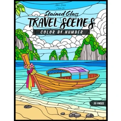 Stained Glass Travel Scenes: Color by Number for Adults: 35 Stunning Views from Around the World with Fun Facts to Explore & Relax