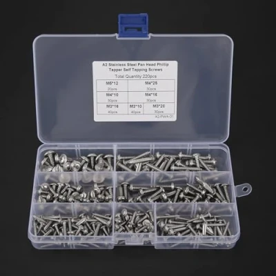 Stainless Self Tapping Screws, 220pcs Pan Head Cross Tapper Screws M3 M4 M5 304 Steel Set with Box Assortment Kit