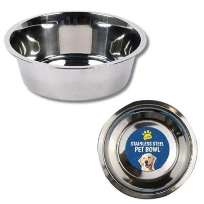 RUST-RESISTANT: Crafted from high-quality stainless steel, this pet bowl is durable and long-lasting, ensuring it can withstand time. PREVENTS BACTERIAL GROWTH: The non-porous surface prevents bacterial growth and odor retention, keeping your pet's food and water fresh for longer periods .DISHWASHER SAFE: Due to its easy-to-clean design, this item can be conveniently placed in the dishwasher for effortless maintenance after each use. TRAVEL FRIENDLY: Suitable for indoor and outdoor use, it is lightweight yet sturdy, making it perfect for travel and outdoor adventures with your pet. SIZE: This stainless steel pet bowl measures 6.5 cm in height and 21.5 cm in diameter, providing ample space for food or water for dogs and cats. HYGENIC AND EASY TO CLEAN: The sleek, seamless construction not only adds to the aesthetic appeal of your home but also makes cleaning a breeze, promoting optimal hygiene for your beloved pet.