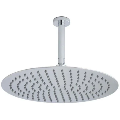 General description Hudson Reed Stainless Steel Round Fixed Head and Ceiling Arm in Chrome features a sleek, round minimalist design that enhances any modern bathroom. Crafted from durable stainless steel, this shower head is stain and rust resistant, ensuring longevity and reliability. Technical specifications Shower Head Diameter: 400mm Shower Head Height: 56mm Inlet Connection Size: 1/2 BSP Minimum Pressure: 0.5 Bar Material: Stainless Steel Colour: Chrome Shape: Round Shower Head Modes: Single Fixed Installation During installation, extra care must be taken to avoid damaging the fittings. Other information The manufacturer provides a 20-year guarantee against faulty workmanship or materials (excluding serviceable parts), provided they have been installed, cared for, and used in accordance with the instructions.