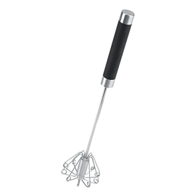 Stainless Steel Semi Automatic Egg Whisk Hand Push Rotatable Manual Blender for Whisking, Beating, Stirring, Multifunction Kitchen Utensils, 10.4Inch