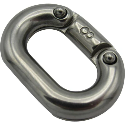 General description Split Connecting Link made from 316 Grade Stainless Steel, designed for quick repairs and mending of stainless steel chains. This link can be split in half to connect two lengths of chain securely. Technical specifications Link Diameter: 12MM (1/2") Inside Measurements: 38MM x 19MM Breaking Load: 2835KG Material: 316 Grade Stainless Steel Usage Primarily used for repairing stainless steel chains. The split link is hammered together after connecting to prevent it from opening again.