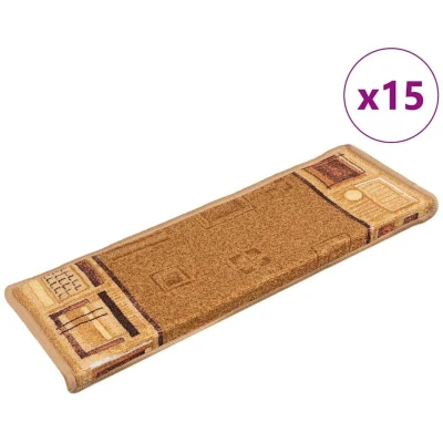 Stair Mats Self adhesive 15 pcs 65x21x4 cm Beige Vidaxl