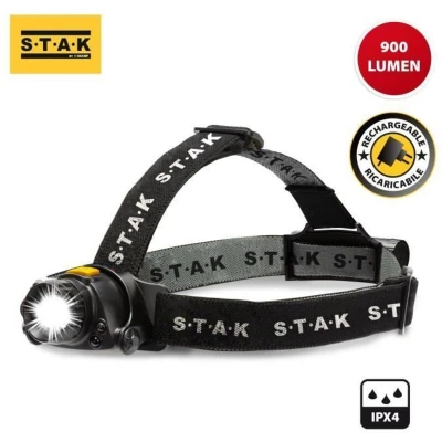 Stak Front LED Rechargeable Battery 2200 mAh Head Lamp IPX4 Motion Sensor, 900lumen, 5h Duration, Running, Fishing, Camping, Yard, Black