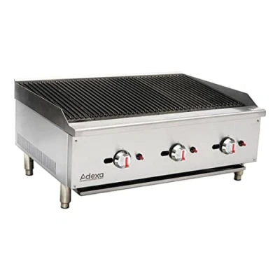 U Shape Steel Burner, Each 30,000 Btu/Hr Controlled every 12” width Standby pilot for easy start Stainless steel adjustable heavy duty legs Zinc alloy knob with chrome coating