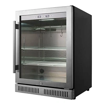 It Has A Built In Active Uvc Sterilization Function That Completely Disinfects The Entire Air Mass In The Dry Aging Fridge The intelligent control system allows temperatures from +2 to +14degreesC as well as humidity values between 50 and 85 percent, each electronically controllable Seamless stainless steel door frame Stylish and easy to clean Touch control panel with UVfunction which is more beneficial to dry aged meat Stable door hinges