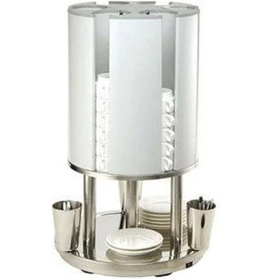 6 Heated Stacking Units For Cups 1 non heated base for saucers 3 cups made of stainless steel for spoons and forks Complete basic unit made of stainless steel Cup stackers have plastic covers