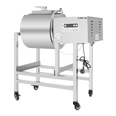 Fast Curing And Power Soften meat and helps it absorb spices, salt and marinades Very simple to operate, also easy to load or unload All material is high grade foot quality stainless steel SUS304 that will keep the machine healthy and long lasting The motor has a brake function which prolongs the life of the machine