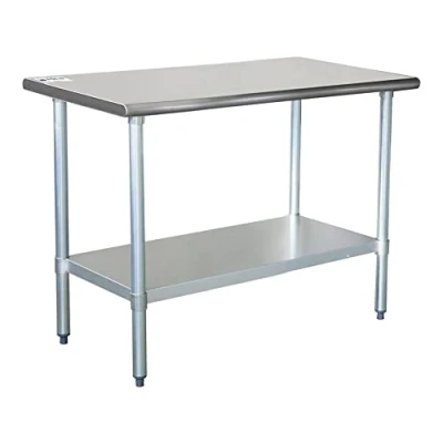 Flatpacked 12mm 430S/S top shelf square slant front edge 12mm galvanized undershelf and hat channel Galvanized leg and socket Plastic bullet feet