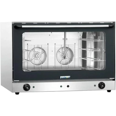 Stainless Steel Cavity Or Ceramic Coating Cavity Manual spraying switch for direct steam Chamber light for better view of cooking process Steel handle fixed by Bakelite base Dual round heaters plus two high speed motors