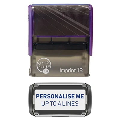 Replacement ink pads available - ASIN B0BRY546FV Click 'Customize Now' to add wording for personalisation Stamp Design 4U IMPRINT 13 Black, Blue, Red, Green or Purple Ink colours available Replacement ink pads available Select Ink Colour and Amount of Lines Needed
