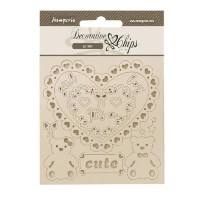 Stamperia Decorative Chips for Scrapbooking, Albums, Card Making, and Bullet Journalling, Laser Cut Cardboard Shapes, Easy to Glue, Perfect Crafts Gifting (Baby, Heart Bears)