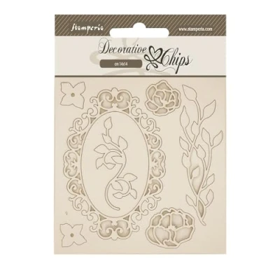 Stamperia Decorative Chips for Scrapbooking, Albums, Card Making, and Bullet Journalling, Laser Cut Cardboard Shapes, Easy to Glue, Perfect Crafts Gifting (Quiet Days, Frame with Flowers)