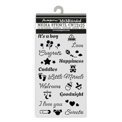 Stamperia Thick Stencil for Scrapbooks, Albums, Cards, Bullet Journals, and More, Flexible Material, Easy to Clean, Perfect Crafts Gifting (Baby, Quotes)