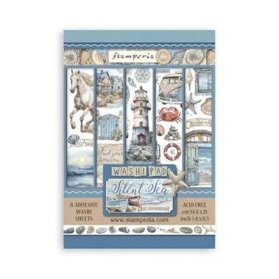 Stamperia Washi Pad for Scrapbooking, Albums, Card Making, Bullet Journalling and More, Translucent, Easy to Cut, Acid Free, Perfect Hobbies, Crafts Gifting (Silent Sea) (A5) (8 Sheets)