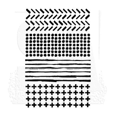 Tim Holtz Cling Mount Stamps: Mixed Media 2 Four deeply etched red rubber cling mount rubber stamps that adhere to any clear acrylic block. We highly recommend using them with Tim Holtz Grid-Blocks. Each stamp measures approximately 5 1/2" x 2". Stamps come on a 3-hole punched sheet easy storage in the Tim Holtz Stamp Storage Binder (sold separately). MPN CMS261