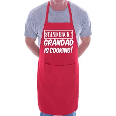 Stand Back Grandad Is Cooking Fathers Day BBQ Novelty Apron Red
