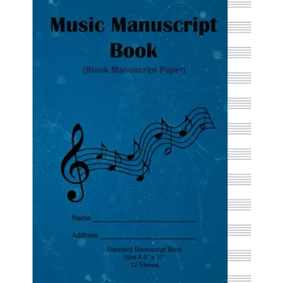 Standard Music Manuscript Paper: Blue Theory 12 Stave / Staff Book for Beginners and Advanced students.