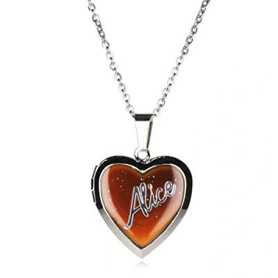Stands Out, Supplying Outstanding Gifts Alice Girls Personalised Name Heart Shaped Mood Locket Pendant Kids Necklace