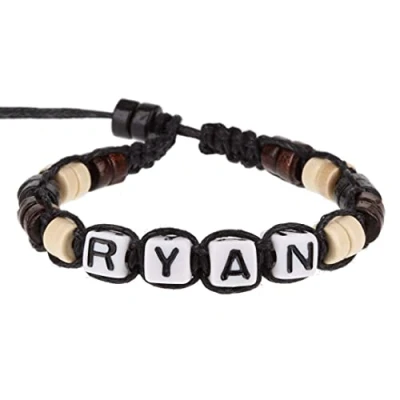 Stands Out, Supplying Outstanding Gifts Ryan Personalised Boys Black Friendship Bracelet Name Alphabet Beads