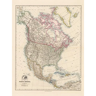 Stanford's Folio North America Map (1884) 60 x 80cm Canvas Canvas Print Ready To Hang