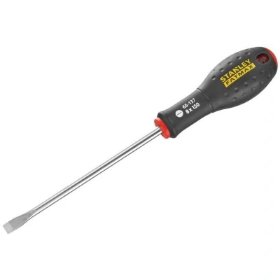 General description The Stanley FatMax Screwdriver Flared Tip 8.0 x 150mm is a professional-grade tool designed for durability and high performance. It features a chrome vanadium steel blade that allows for high torque and minimizes the risk of tip breakage. The handle is molded directly to the shaft, ensuring a virtually unbreakable bond for long-lasting use. The ergonomic, soft grip handle provides excellent comfort and reduces fatigue during use, while the smooth domed end allows for fast and comfortable spinning action. Technical specifications Blade width: 8.0 mm Blade length: 150 mm (6 in) Material: Chrome-vanadium steel Handle: Ergonomic, soft, non-slip Compatibility and accessories Designed for use with standard flat-head screws Compatible with various screw sizes requiring an 8.0 mm flat screwdriver Installation No installation required; simply select the appropriate screwdriver for your screw size and type. Usage Ideal for driving or removing flat-head screws Suitable for