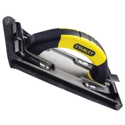General description The Stanley STA005927 Hand Sander is a robust handheld tool designed for durability and ease of use. It features a heavy-duty ribbed aluminum body that remains flat and rigid, ensuring stability during operation. The efficient clamp design securely holds sandpaper or sanding screens in place, while the comfortable bi-material handle enhances grip and user comfort. Technical specifications Grinding wheel size: 230 mm x 80 mm Material: Aluminum body for strength and torsion resistance Weight: Approximately 0.41 kg Mechanism: Secure clamping system for abrasive attachment Handle: Dual-material for comfort and safety Compatibility and accessories Compatible with most standard abrasives Accessories included only if specified in the product package Installation Ensure the grinder is unplugged before installation Attach the abrasive disc securely using the clamping mechanism Check that the abrasive is properly fixed before use Usage Use with appropriate safety gear such