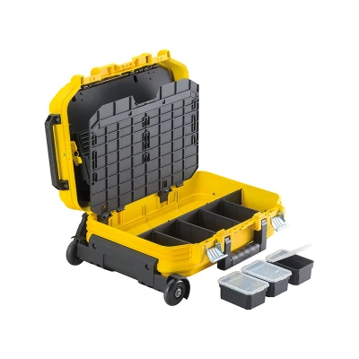 General description The Stanley FatMax® Wheeled Technician's Suitcase is designed for professionals and DIY enthusiasts seeking a durable, organized, and portable tool storage solution. With a robust construction and mobility features, it is suitable for use in workshops, construction sites, or during technical interventions. Technical specifications Type: Rolling technician case Capacity: 16.8 liters Material: Reinforced fiberglass polypropylene Dimensions: 540 x 400 x 435 mm (54 x 40 x 23.5 cm) Net weight: 7.6 kg Hinges: Metal Locks: Metal, secure Internal organizers: Yes, with removable separators Handle: Telescopic aluminum with ergonomic rubber grip Wheels: Yes, ball bearing rollers Compatibility and accessories Compatible with various tools and accessories stored inside or attached externally Can be secured with a padlock (not included) for added security Installation No installation required; ready to use out of the box Usage Ideal for transporting and organizing tools securely
