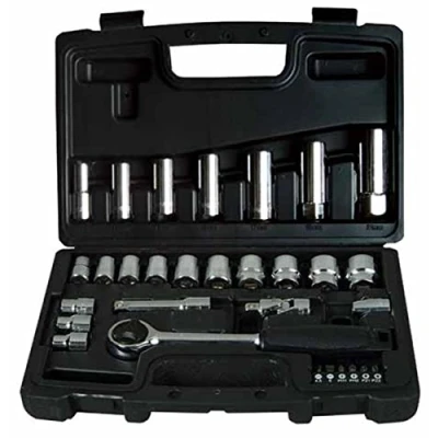 Quick release and reverse switch Comfortable handle Clam-shell case and closed box design Ratchet: 3/8" SD quick release Sockets: Hex - 8, 9, 10, 11, 12, 13, 14, 15, 16, 17, 18, 19, 21, 22mm, Weight: 4.802439684277 pounds, Manufacturer: Stanley