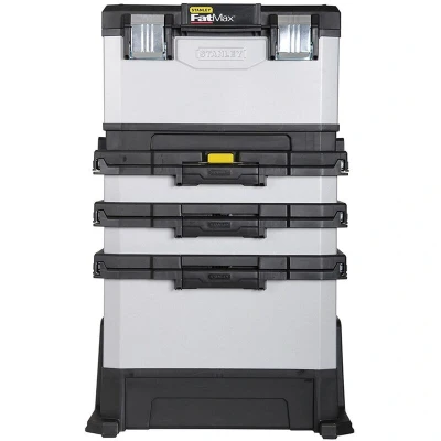 General description The Stanley 195622 mobile workshop is the complete mobile solution for large and small tools and accessories. It features a large storage base ideal for power tools and club hammers, along with a slidable drawer system for easy access to all tools on all levels. This mobile tool chest is equipped with heavy-duty road-tested wheels for durability and stability, and an extendable handle for easy maneuverability. The workshop includes a top section toolbox with a plastic lift-out tray for smaller tools, fitting neatly into the fold-out lid. It is a versatile storage system suitable for homeowners and tradesmen, accommodating a comprehensive range of hand and power tools. Technical specifications Weight: 4 kg Dimensions: 568 x 893 x 389 mm Material: Metal and Plastic Number of Compartments: 4 Lock Type: Latches and Padlock (padlock sold separately) Overall Depth: 389 mm Overall Height: 893 mm Overall Width: 568 mm Installation No installation required; ready to use