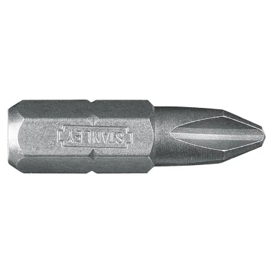General description Stanley® Phillips Bits are precision machined for a perfect fit, forged for added tip strength, and ground for long life and durability. These bits are suitable for industrial, construction, and DIY applications, making them a versatile choice for various tasks. Technical specifications Tip size: No. 2 Phillips Length: 25mm x 1/4-inch hex Box of 25 bits Compatibility and accessories These Phillips bits will fit most of today's power tools, bit holders, and hex screwdrivers.