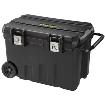 General description The STANLEY® Mobile Job Chest is designed for storing large power tools and features a large internal removable tray for smaller hand tools and extra components. It includes integrated timber grooves in the lid, making it ideal for sawing pieces of timber. The chest is equipped with strong metal latches for durability, a wide telescopic handle for easy transportation, and a padlock eye for added security. Technical specifications Outer Dimensions: 764 x 478 x 489 mm Max Load: 50 kg Volume: 91 L (24 gallons) Other information Heavy-duty road-tested wheels for easy transport Removable tote tray fits neatly into the telescopic handle Top lid features butterfly screws for attaching levels, hand saws, and other accessories