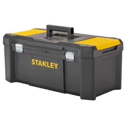 JoybuyThe Stanley 26-inch Essentials Tool Box with Metal Latches offers a spacious 33L capacity, metal rust-proof latches, two lid organizers, a removable tote tray, and a padlock eye for secure, organized, and easy transport of tools—ideal for both professionals and DIYers. Dimensions: 66.5 × 28 × 33.5 cm.