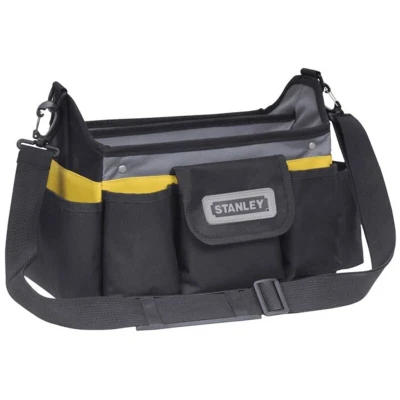General description The Stanley STST1-70718 Open Tool Bag is designed for transporting a selection of everyday tools for various jobs. It features an open design for quick access to hand tools and is constructed with durability in mind. Technical specifications Dimensions: 32 x 20 x 26 cm (12.1/2 x 8 x 10.2/8 in) Usage Ideal for carrying everyday tools Vertical storage pockets and loops for maximum organization Small organizer compartment for drill bits and small parts Plenty of pockets for smaller items Other information Fitted with a strong, adjustable shoulder strap