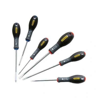 General description The Stanley FatMax Screwdriver Set includes six high-quality screwdrivers designed for durability and performance. Made from chrome vanadium steel, these screwdrivers provide high torque and minimize the risk of tip breakage. The handle is molded directly to the shaft, ensuring a virtually unbreakable bond for long-lasting use. The soft grip handle enhances comfort and reduces fatigue, while the color-coded tips allow for easy identification of the right tool for the job. Technical specifications Material: Chrome vanadium steel Number of Pieces: 6 Type: Sl/Pz Dimensions: Parallel: 3.5mm x 75mm, 5.5mm x 150mm Flared: 5.5mm x 100mm, 8mm x 150mm Pozi: PZ1 x 100mm, PZ2 x 125mm Usage The Stanley FatMax Screwdriver Set is ideal for various applications, including driving wood screws and other fastening tasks. The large diameter handle provides higher torque, making it easier to handle tougher jobs. Other information
