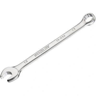 General description This is a 13 mm combination wrench from STANLEY® FATMAX®, designed for versatile use in various assembly and maintenance tasks. It features an improved grip and anti-slip design for better contact with screws, making your work easier and more efficient. Technical specifications Size: 13 mm Material: Corrosion-resistant chrome vanadium steel Finish: Satin chrome Head design: 12-point versatile box end Angle: 15° offset for improved access and torque Compatibility and accessories Suitable for use with standard screws and bolts that match the 13 mm size Installation No installation required; simply select the appropriate size and use for your task Usage Designed for tightening or loosening screws and bolts Features a 15° angled head for better accessibility in tight spaces
