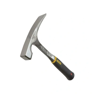 General description This Stanley FatMax Antivibe Masonry Hammer is expertly designed for bricklaying, making it ideal for cutting bricks, masonry tiles, and concrete blocks. It features a forged steel head and an ergonomic wooden handle, ensuring durability and comfort during use. The hammer includes a flat head with beveled and rounded edges, along with a hardened cutting edge for shaping, marking, and finishing materials. Its balanced design guarantees precise and efficient work. Technical specifications Length: 280 mm Head weight: 570 g Total weight: 850 g Material of head: Forged alloy steel Material of handle: Ergonomic wood Color: Black/Silver Compatibility and accessories Suitable for cutting and shaping bricks, stones, and concrete materials Installation No installation required; ready to use out of the box Usage Use the flat side for breaking and shaping materials Utilize the beveled edges for marking and scoring Apply controlled force for precise cuts and adjustments Other