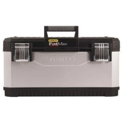 General description This Stanley 1-95-615 Toolbox FatMax is a robust 20-inch tool box designed for durability and functionality. It features metal walls combined with a protective plastic base and edges, ensuring your tools are well-protected. The top includes a V-groove that holds timber or pipes securely in place for cutting, making it a versatile addition to your toolkit. The toolbox is equipped with a fold flat, soft grip handle for easy transport, and heavy-duty metal catches provide secure locking. Technical specifications Dimensions: 497 x 293 x 295 mm
