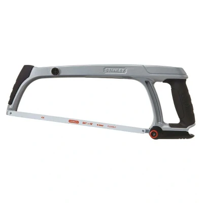 General description The Stanley FatMax hacksaw features a durable die-cast aluminum body that is lightweight yet strong. It is designed for precise and comfortable cutting tasks in DIY and home improvement projects. Technical specifications Cutting capacity: 12 cm (5 inches) Blade tension: Up to 150 kg Supplied blade: Bi-metal blade (24 teeth per inch) Installation Adjust the blade tension using the internal thumb dial tension mechanism inside the handle Usage Use the thumb grip for more accurate cuts Hold the soft grip handle for comfort during use