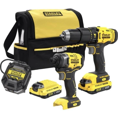 Get ready to tackle your DIY projects with this cordless Stanley FatMax V20 combo drill and impact driver kit. You can drill, drive, chisel and hammer without worrying about wires. The SFMCD711 Hammer Drill works with wood, metal and plastic. And the SFMCF800 Impact Driver can be used for driving large fasteners and other high torque applications.Good to know- Both drills have different speed and power options, find the right fit for the job- The kit comes with an 18 V charger, 2 Lithium-ion batteries and a soft bag to store it- You can keep an eye on battery levels with the built-in indicator